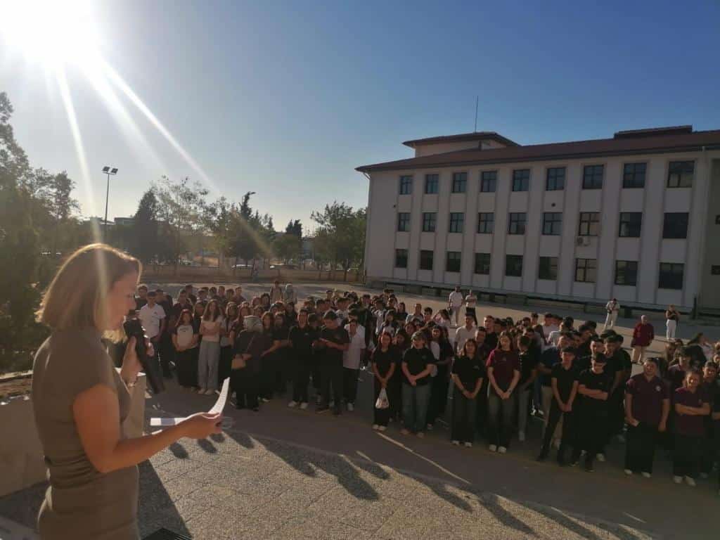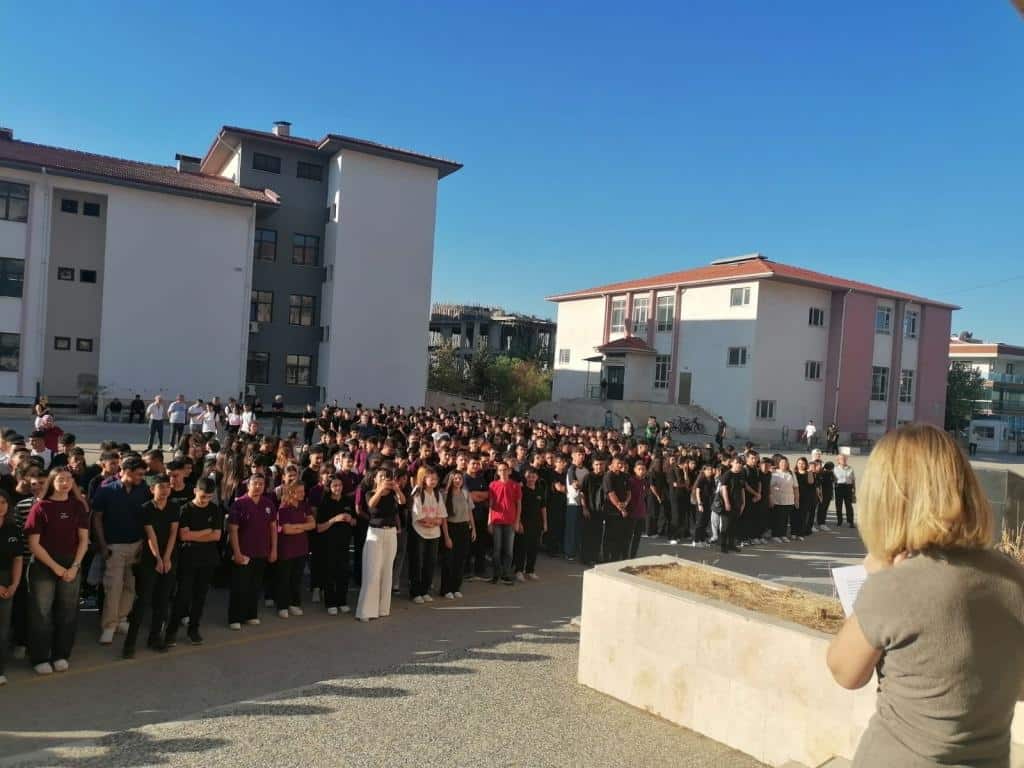 Okul müdürümüz Belma TANER konuşmasına şöyle devam etti: "Öğrencilerimizi, kendini tanıyan, yeteneklerini bilen, duyarlı, düşünen, düşündüğünü uygulayabilen soran, sorgulayan, eleştiren, iyiden-doğrudan-güzelden yana tavır koyabilen bireyler olarak Türkiye`nin aydınlık geleceği için sağlam karakterli gençler yetiştirmek en büyük idealimizdir.